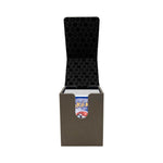 Become a legend with one of the most iconic legendary Pokémon of all time. The Mewtwo Alcove Flip Box features a debossed character outline over a purple foil silhouette on a premium leatherette material. These deck boxes hold up to 100 double-sleeved cards and the dual thumb notches make it easy to remove your cards when you are ready to battle. The flip lid is secured shut with several strong magnets, ensuring cards are protected when not in use. This is the perfect addition to any Pokémon trainer’s collection!