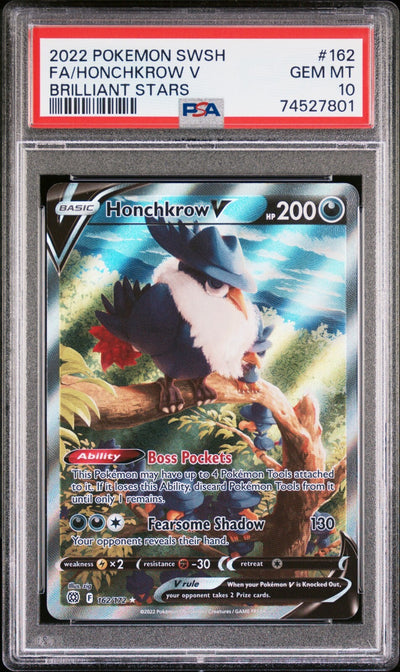 Honchkrow V 162/172 PSA 10 Brilliant Stars 162 2022 Pokemon Full Art SWORD AND