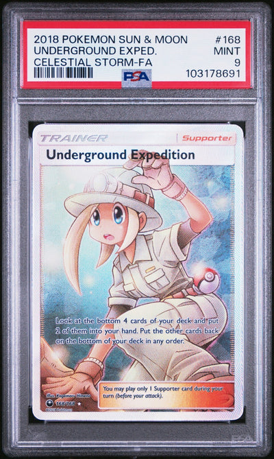 Underground Expedition Full Art 168/168 Graded PSA 9 S&M Celestial Storm 168